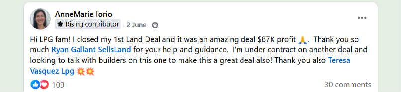5. Direct line to the inner circle – When you're stuck, you get answers from the top 1% of land investors in hours, not days. No customer service runaround.